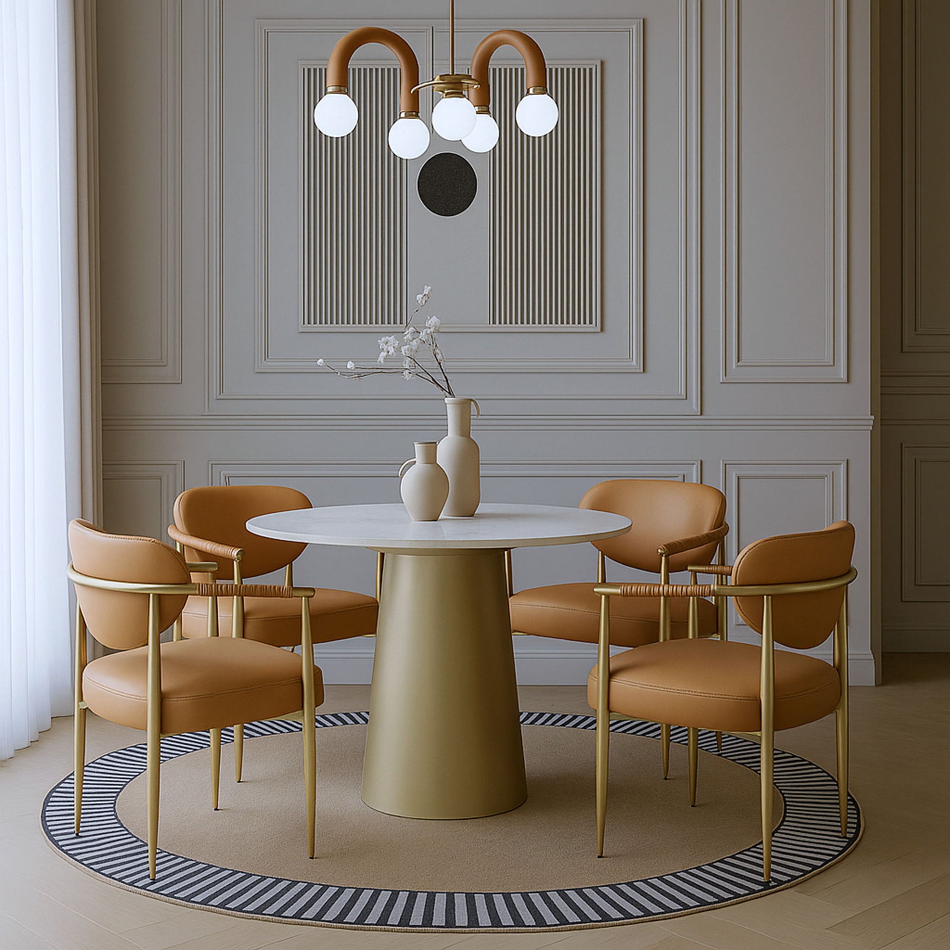 Virella - Vegan Leather Upholstered Dining Chair With Gold Base (Set of 2) - Cognac