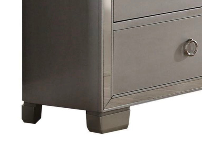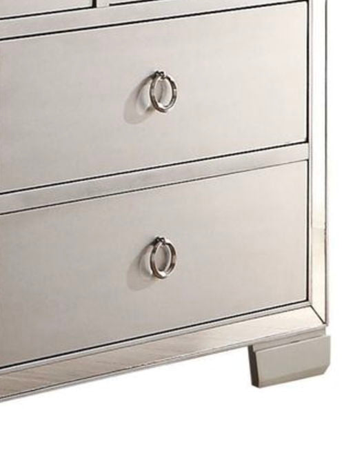 - Mirrored Accents: The front case is adorned with mirrored accents, adding a reflective and sophisticated flair to the dresser's overall design.