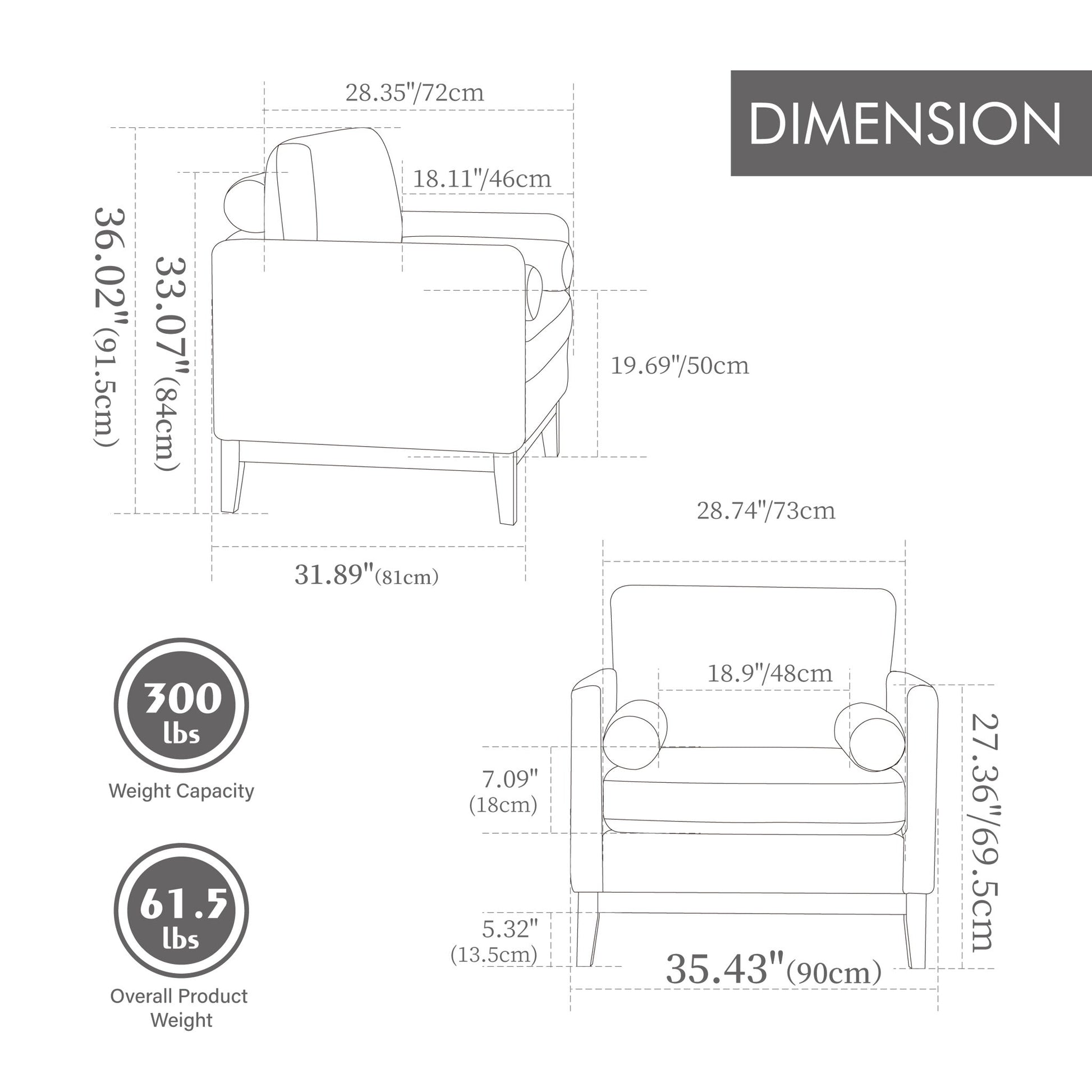 - Sturdy Construction: Solid wood and manufactured wood frame supports up to 300lbs, featuring durable rubberwood legs with natural grain finish.