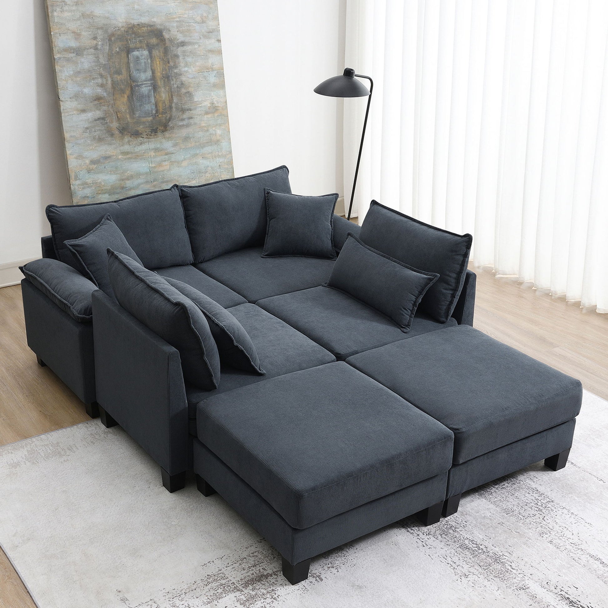 Wide Seat Modular Sectional Bed Sleeper Couch Set With Armrest Pillow 6 Seat, Free Combination Sofa With Ottomans Oversized