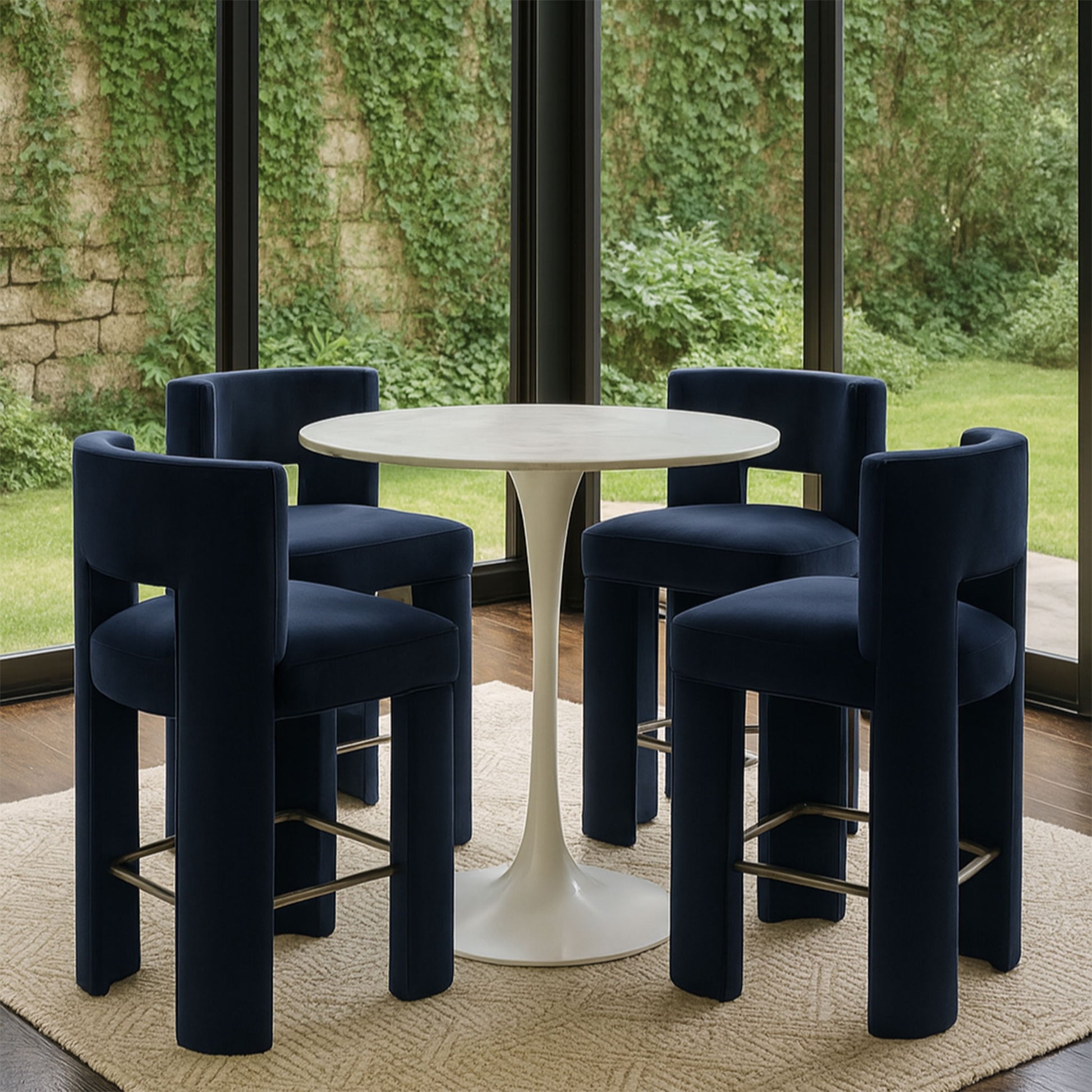 Zuno - Velvet Performance Fabric Upholstered Counter Stool (Set of 2) - Navy